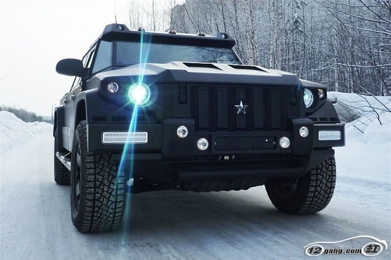 车型简介:拉脱维亚汽车公司Dartz与俄罗斯Kombat公司联合制造的防弹系列越野车。DartzPrombron车身装甲厚达175px,可抵御AK47的攻击,自身重量高达4吨,搭载8.0L排量V8增压柴油发动机,最大功率456马力,最大扭矩850牛米,而最高车速高达240km/h。车内采用真皮内饰,配备Rogue Acoustic影音系统及动功能液晶屏,在强悍的性能之余不乏奢华。该车的主要客户在俄罗斯和东欧,而且,针对那些不差钱的“土豪”们,DartzPrombron还有黄金版。