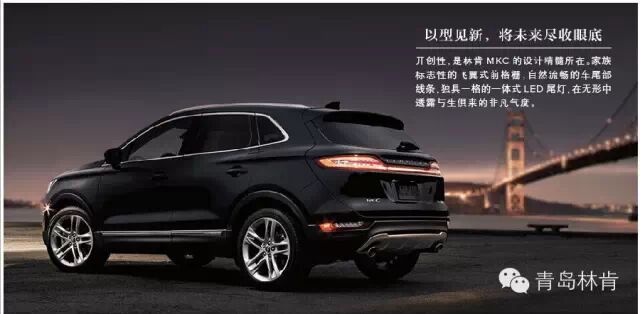 全新林肯MKC,搭载全新2.0升EcoBoost发动机,最大功率182千瓦,最大扭矩366牛·米,在保证出众动力输出同时,拥有杰出的燃油经济性。同时配备CCD连续可调阻尼悬挂系统,可在运动、舒适和标准驾驭模式间切换,让每一条路都随心所驭。而感应式电动开启后备厢门也为消费者带来更便捷的用车体验。MKC独有的林肯迎宾感应,在车主距离车辆2.5米时于前门地面投射出带有“林肯”星标的“欢迎毯”,并旋即点亮门把手、前后车灯及座舱环境灯,运用领先科技为车主营造温暖尊贵的贵宾式礼遇。同时座椅表面还采用专为林肯量身定制的BridgeofweirDeepsoft优质真皮,实现豪华舒适的驾乘感受。