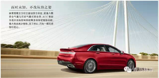 全新林肯中型豪华轿车MKZ,在承袭林肯经典DNA的同时赋予现代化元素,以标志性的飞翼式前格栅、轿跑式的斜背和一体式LED尾灯,凸显流线型的车身设计。一体式设计电动全景天窗是MKZ的匠心之笔,1.4平方米的天窗玻璃提供同级别轿车款型中最大尺寸的开放空间。MKZ配备全新2.0升EcoBoost发动机,最大功率186千瓦,最大扭矩389牛·米,确保了强劲的动力输出。独具一格的电子按键式换挡实现创新的灵活操控,搭载CCD连续可调阻尼悬挂系统显著提升驾驶动感,为车主带来全面优化的智能互动体验。除此之外,MKZ的前排座椅通过11个气垫调整椅背与座垫的轮廓形状,紧贴人体曲线,并配备独有的ActiveMotion连续轻柔的滚动按摩,营造无可比拟的驾乘舒适感。