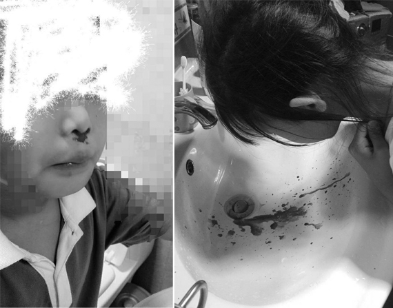 于女士是北京市芳草地小学丽泽分校的学生家长,她的儿子小磊今年9岁,开学之后,学校铺设跑道的同时,四年级的小磊身上开始出现了不明原因的疹子。十一之后,整整一周内,小磊每天晚上回家就流鼻血。一开始于女士并没有想太多,直到看了深圳市“毒跑道”的新闻报道,她才联想到小磊跟新闻报道上的情况一样。