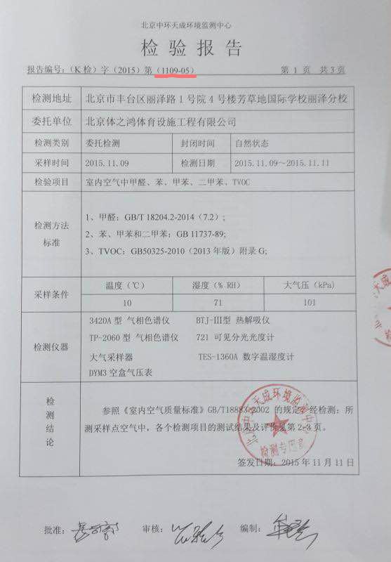 为了小磊的健康,她开始召集身边有相同症状的学生和家长们,向学校和教委反应情况。若干次与校方交涉后,负责修建操场招商的丰台区教委向于女士出示了一份承建方在修建跑道前事先送样的质量检测报告书,但这份报告却被证实是,假的!