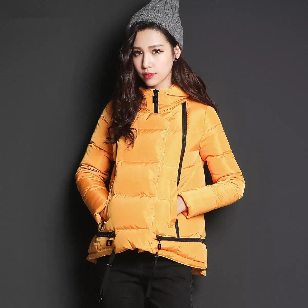 NO5、斜襟连帽羽绒服