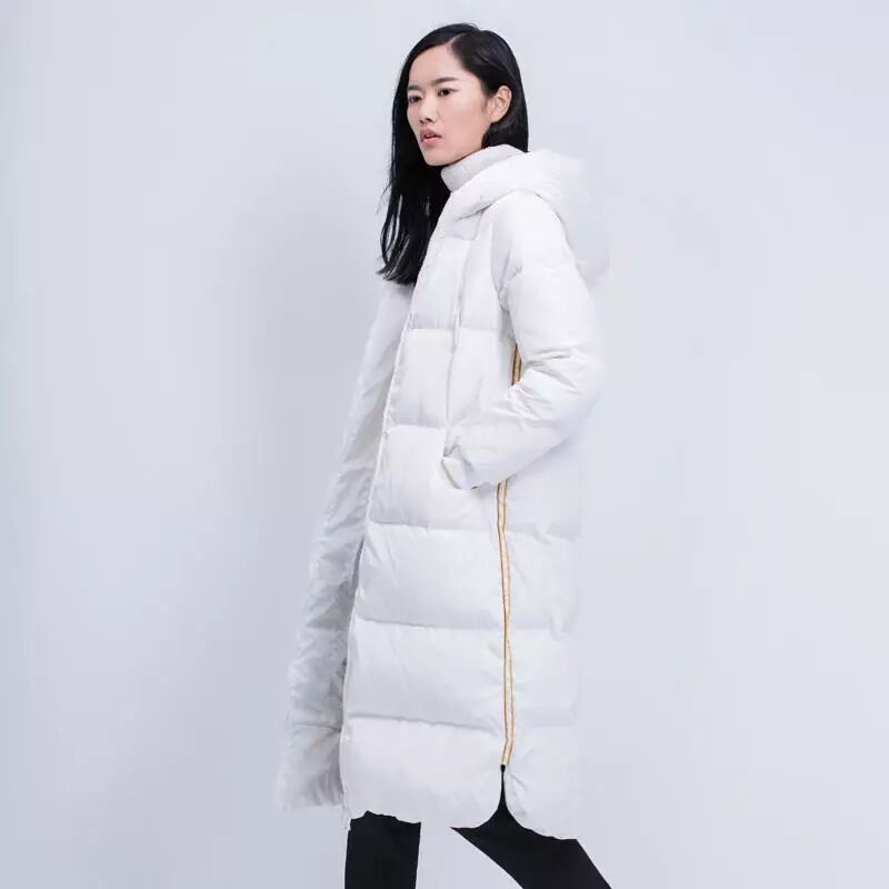 这款羽绒服,简洁的A字廓型,将上身很好包容,露出腿部线条,更显挺拔、高挑。帽领一体和抽绳下摆,集休闲、运动于一身。斜门襟设计,充满独特个性。搭配长靴,帅气十足。