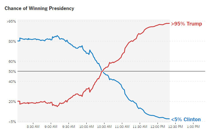 北京时间11点15分:纽约时报显示特朗普赢得大选概率上升