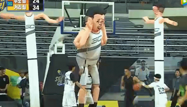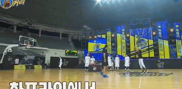 在看到库里的远投神迹后,韩国MC们知道想要击败库里必须采用非常人手段,节目组也早有准备: