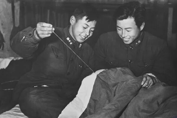 同班战友小周父亲得了重病,雷锋知道后,以小周的名义给家里写了信又寄去10元钱。战友小韩在夜里的出车中棉裤被硫酸水烧了几个洞,雷锋值班回来发现后,把自己的帽子拆下来一针一针地为小韩补好裤子,轻轻地盖在他身上。知道这个情况的战士乔安山说:“为了给你补裤子,雷锋半宿都没睡!”