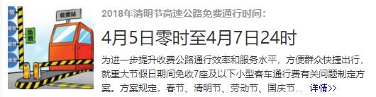 春节、清明节、劳动节、国庆节四个国家法定节假日免收小型客车公路通行费。免费通行的车辆为7座以下(含7座)载客车辆,包括摩托车。