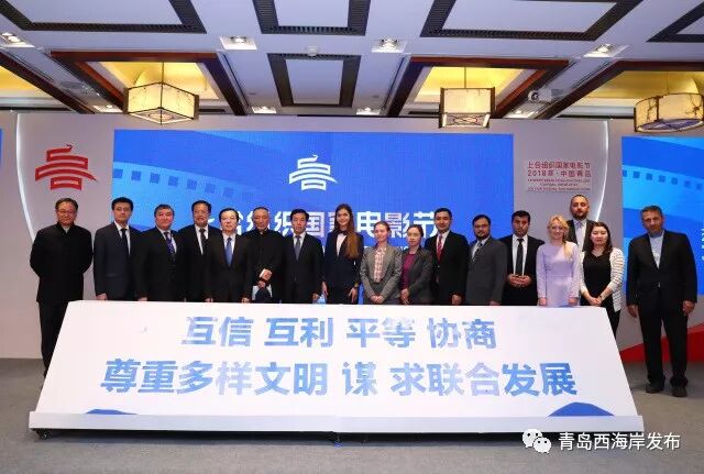 4月18日,上合组织国家电影节新闻发布会在北京举行。上合组织国家电影节由国家电影局、山东省人民政府主办,由青岛市人民政府承办,将于6月13日至17日在青岛西海岸新区举行。电影局副局长李国奇,外交部欧亚司参赞于骏,电影频道主任曹寅,山东省新闻出版广电局副局长钟华,青岛市委常委、副市长王家新,哈萨克斯坦公使衔参赞耶里克·阿希莫夫等11位上合组织国家驻华使节代表、上合组织秘书处代表等出席发布会。