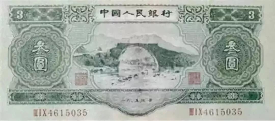据了解,三元人民币是第二套人民币中的罕见币种,整体呈淡绿色,是我国唯一一张面额为三元的人民币纸币。