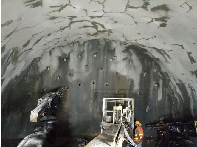 为超前处理不良地质体,施工单位采用了一整套硬岩海底隧道信息化快速注浆加固堵水技术。施工爆破采用低爆速、不耦合装药、微差起爆和光面爆破等减震爆破技术,减少隧道爆破开挖对围岩的损伤。