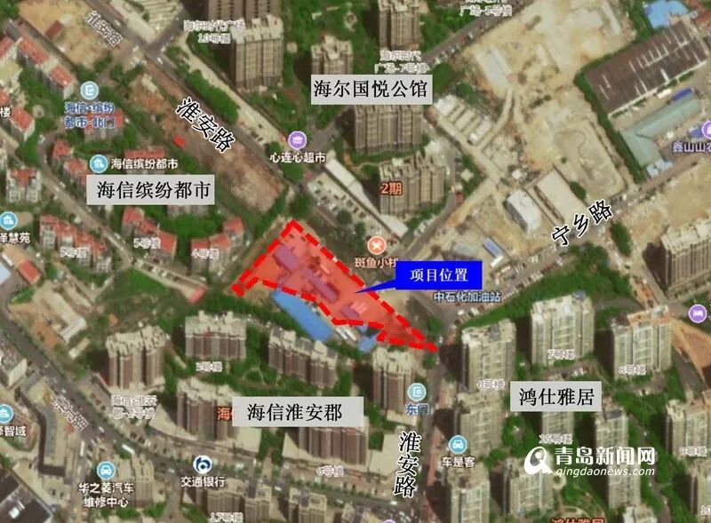 根据规划内容显示,该项目位于市北区淮安路66号,紧邻海信缤纷都市及海信淮安郡,项目建设内容为住宅及办公,由青岛市市北区创新资源集聚示范片区管理委员会建设。