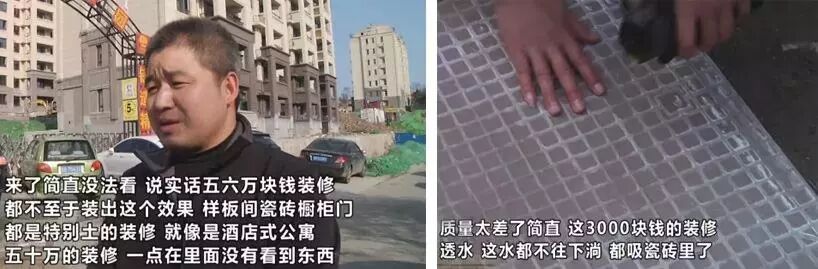 看完样板间,心里有落差的不只史先生一人。大部分业主都表示,不仅装修风格实在难以让人满意,这装修质量也令人堪忧。在工地旁,一位业主就拿着瓷砖,现场做起了实验。