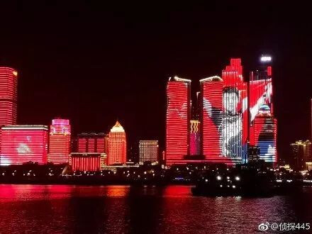 网友称应援地坐落在张继科老家青岛的浮山湾,53栋楼体联屏绵延5.2公里,总面积达48万平方米,近300万盏LED灯源,这也是第一次个人主题投放,最多楼群最长海岸线灯光秀。