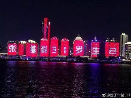 据悉,张继科的粉丝们自发组织起来一起出钱应援,为张继科生日在青岛置办联屏灯光秀以表示祝福,隔着海滩对岸53栋楼群联屏写着“张继科31岁生日”,除了庆生文字之外,还有张继科夺冠时的照片接连变换,整个海岸线被印成一片红色海洋,场面十分壮观。