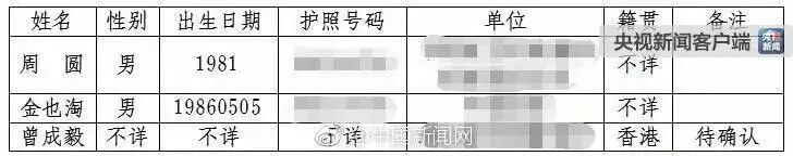截至昨晚21时,已公布的三人名单中,两人为80后,包括1981年出生的周某和1986年出生的金某。另有一名香港人士曾某。