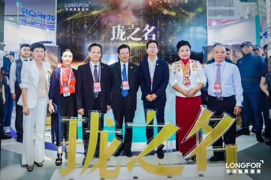 中国物业管理协会会长沈建忠、龙湖智慧服务集团总经理曾益明,与政府、行业、企业领导一起出席“珑之名”发布仪式