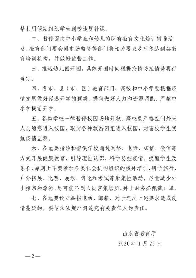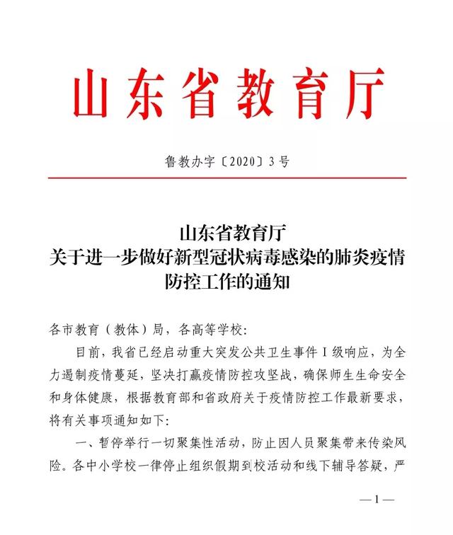 山东教育厅:推迟幼儿园开园 严禁中小学提前开学