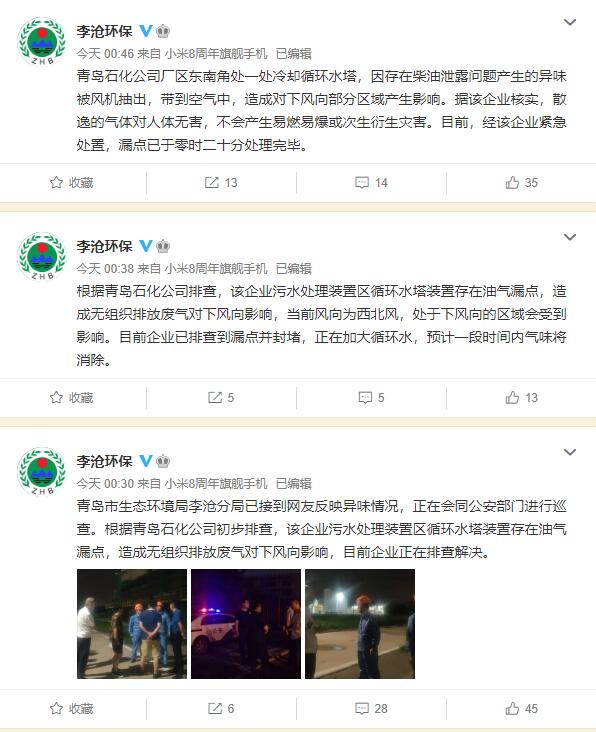 针对青岛市民闻到不明异味,@李沧环保 通报: