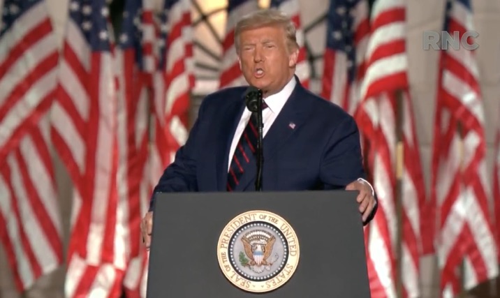 当地时间8月27日,美国总统唐纳德·特朗普在白宫南草坪发表演说,正式接受共和党总统候选人提名。