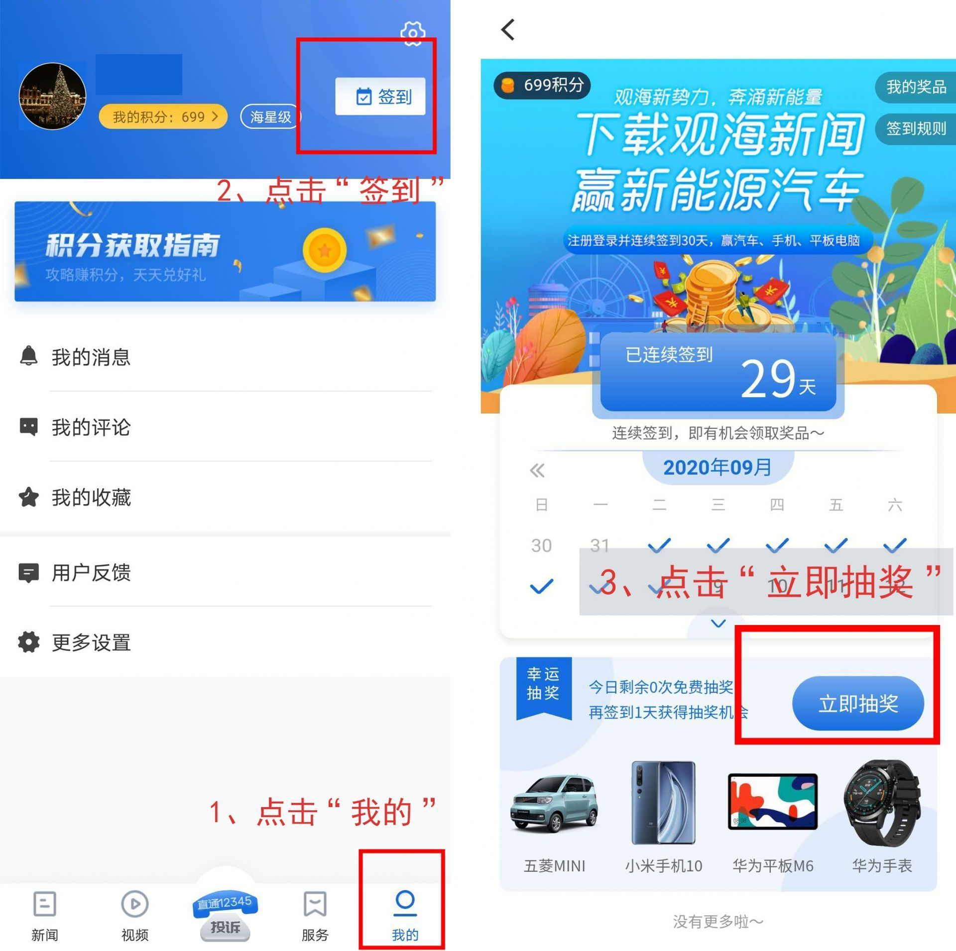 目前,观海新闻客户端签到抽奖活动仍在火热进行中!更多的手机、平板电脑、手表、音箱、手环,以及“终极大奖”新能源汽车在等待着它们的幸运主人。只要下载观海新闻客户端,每日打卡签到,就有机会拿奖。