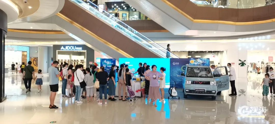 一等奖新能源汽车在线下推广巡展凯德广场站展出,吸引很多市民围观。