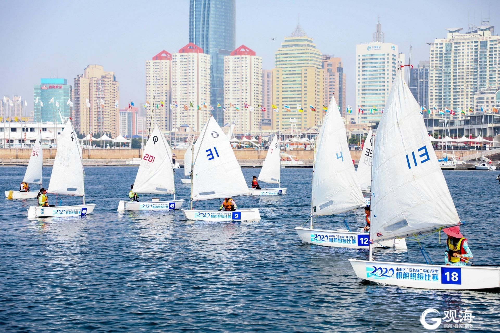 青岛日报社/观海新闻9月17日讯 9月16日,2020年市南区“区长杯”中小学生帆船帆板比赛在青岛奥帆中心启幕。市南区33所中小学的200名运动员将参加3个大项、11个组别的比赛,参与人数创历史新高。