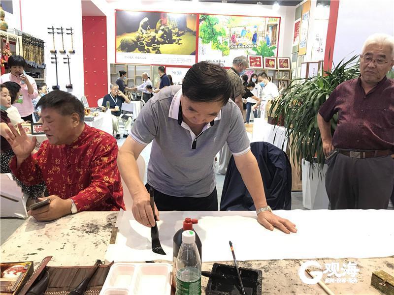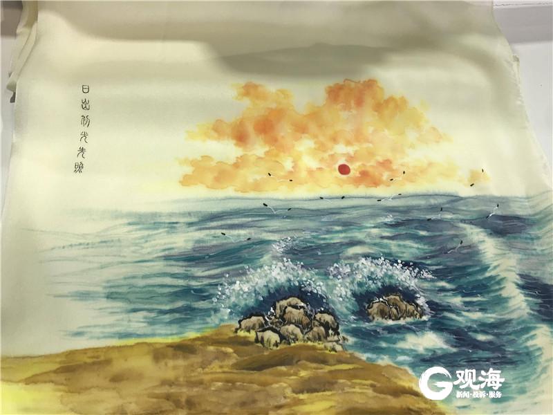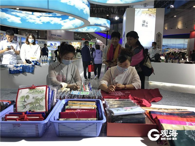 走进日照展区,最瞩目的当属展区中央,两位正在丝、布制品上作画的手艺人。据了解,他们正在描画的正是日照莒县非遗产品——莒绘。见过在丝、布制品上刺绣、机打等图案绘制方式,以画绘制的莒绘手工艺品受到了参展者的广泛欢迎。“这是我第一次见用笔画出图案的制作方法,很有意思”,在日照馆中,山海元素搭配着五颜六色的布艺品、手工品,日照馆正在“绘”出别样精彩。