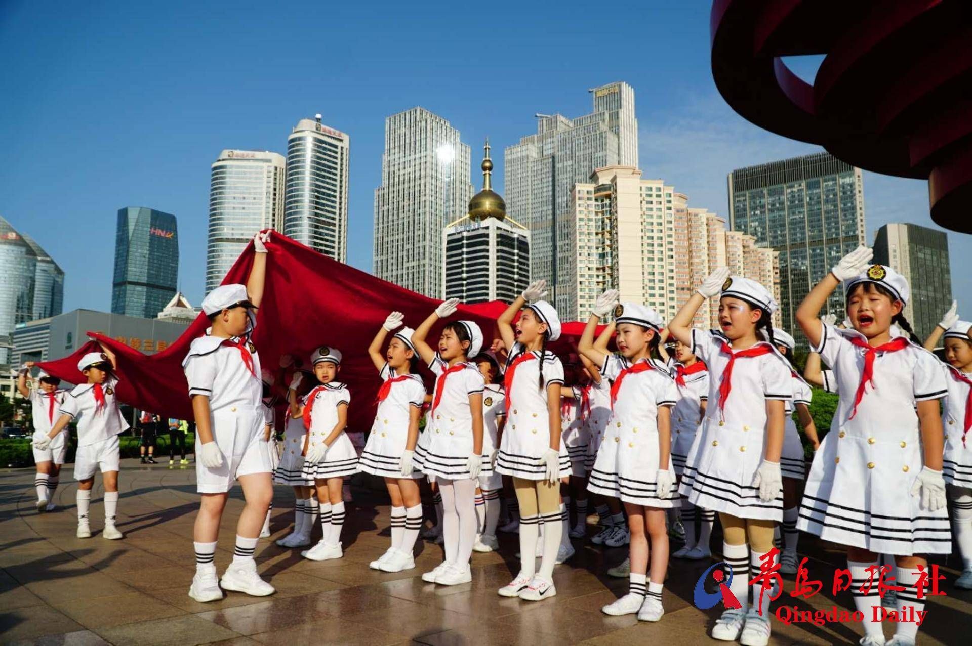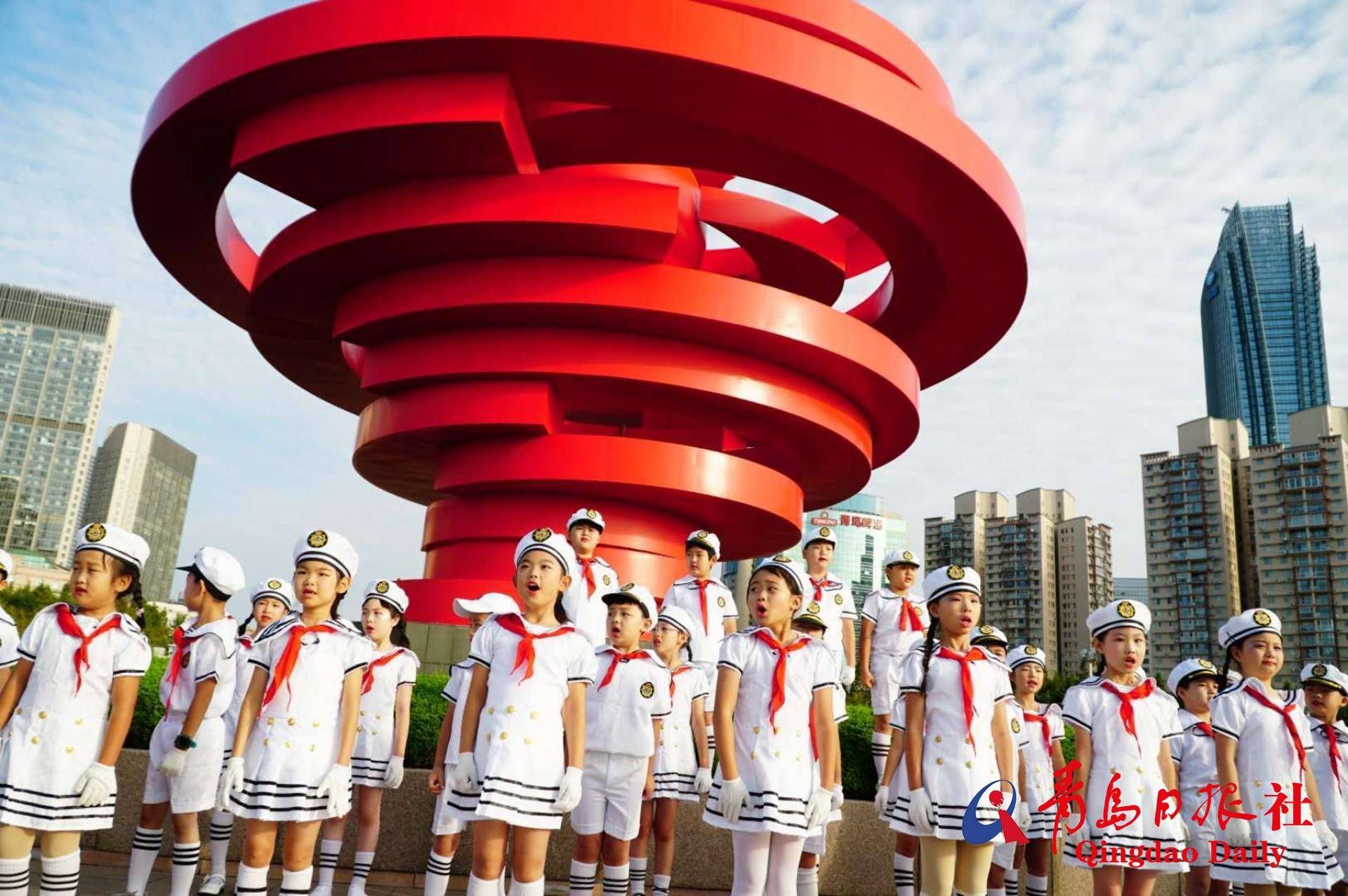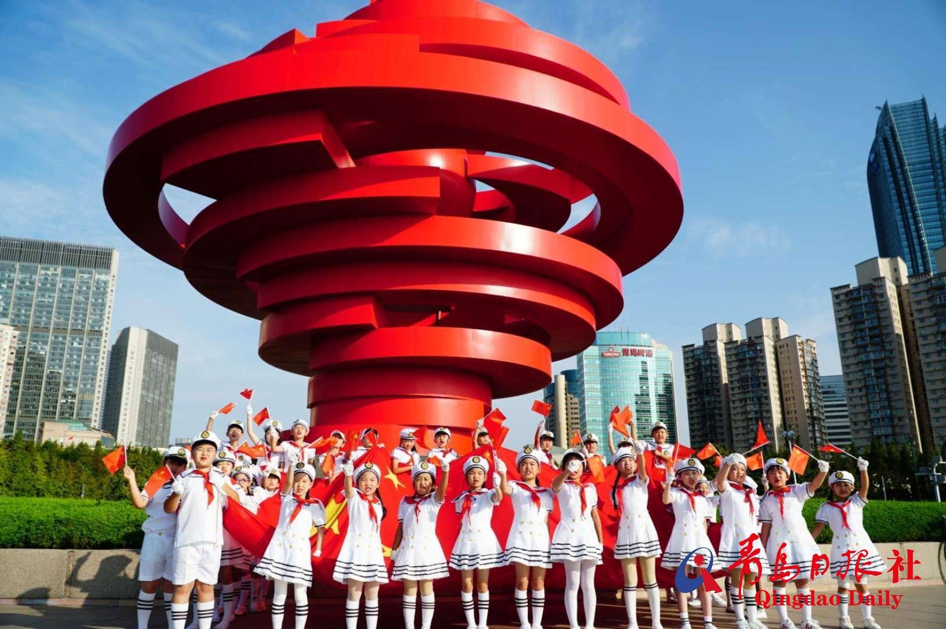 青岛小学生自发组织快闪迎国庆