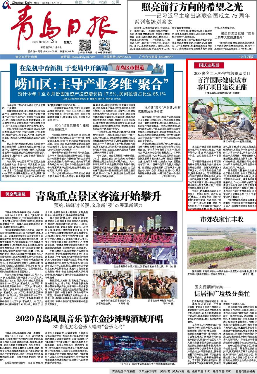 百洋国际健康城市客厅项目是青岛国际大健康产业化基地的首开启动项目,总建筑面积超4.6万平方米,作为青岛市级重点项目,建设备受关注。“百洋国际健康城市客厅项目由两栋楼组成,其中一栋已经实现正负零,目前正在进行地下车库施工;另一栋也会在假期结束后达到正负零状态。”项目工程部经理李龙介绍。