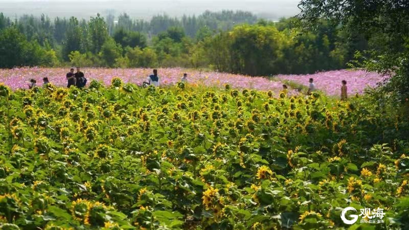 青岛日报社/观海新闻10月4日讯 十月最不能错过的景观,一定是璀璨的百亩花海,最不能辜负的邀约,一定是那浪漫醉人的花海之约。正值国庆中秋假日,平度市明村镇三合山景区百余亩花海内盛放的向日葵与波斯菊交相辉映,格外耀眼,吸引了不少游客来此赏花游玩。