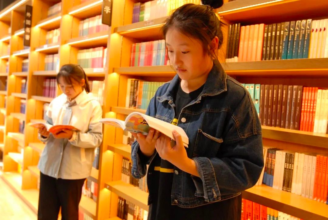 即墨区书城的人气非常旺,书架前有不少市民驻足翻阅、选购,付款的队伍也不时排成长龙。不少市民乘着假期带孩子到书店购买书籍,和孩子们一起阅读,培养孩子的阅读兴趣,丰富假期生活。书城里最多的是学生和陪伴的家长,学生们多以课外阅读书籍为主。很多学生或席地而坐全神贯注地看书、或四处查找自己感兴趣的书籍,不少陪孩子的家长也拿起书本“充电”,书架下尽是爱好学习的读者。