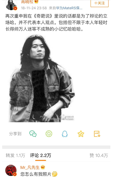 果不其然,被大家当做一个笑料传来传去,随后他就放出了自己年轻时候的一张照片,照片中的高晓松潇洒帅气,还真有那么点感觉了。