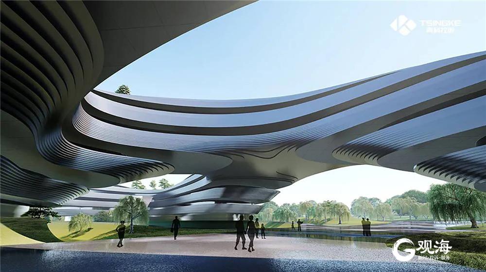 据介绍,中央美术学院青岛校区总投资约13.48亿元,总建筑面积11.9万平米,建设教学综合楼、教工公寓、宿舍综合楼、礼堂四部分。项目由中央美术学院设计团队领衔设计,方案主要体现时代意识、未来学院、开环大学三个主导思想,建筑形体如“莫比乌斯环”般循环往复,设计理念正是通过这种空间的重叠穿插引导不同学科之间的深度交融,从而探索不同学科之间交流共享的教学模式。方案设计充分考虑了融于自然、和谐共生的创作思想,建筑立面通过设置层层退台,形成了多层次、立体化的立面绿化体系,同时结合市政道路设置两座钢结构大跨连桥,既延续了当地原始地貌特色,使建筑与周边山体有机对话,又保留了市政道路的正常通行功能,桥下空间别具一番韵味。
