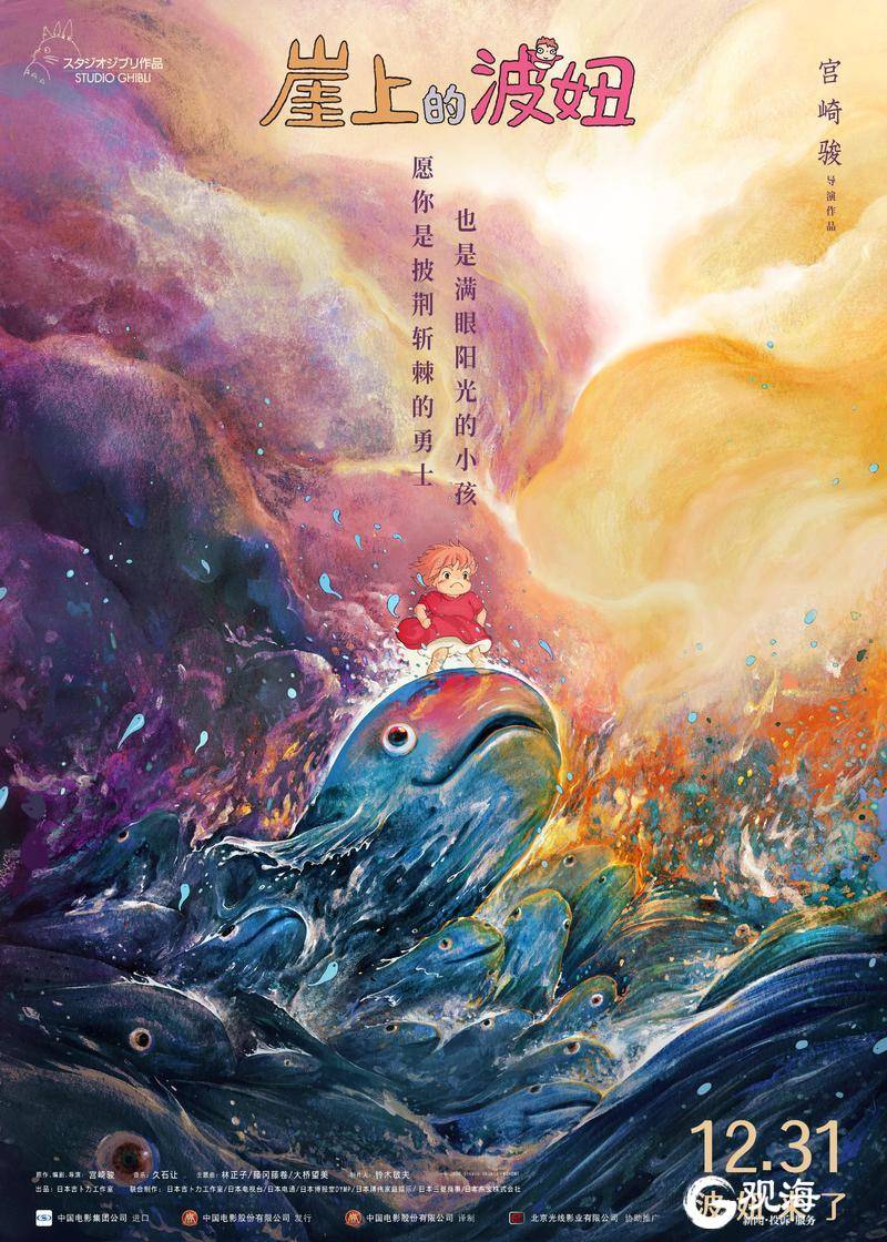 宫崎骏经典电影《崖上的波妞》选在元旦当天中国上映,这部纯情动画也是催泪之作。海神的女儿小波妞喜欢上了住在悬崖上的宗介,两个孩子一起在海边玩耍,波妞为了宗介还长出了人类的腿脚,然而魔法师父亲不愿意女儿与人类交往,波妞带着风雨和海浪去追逐宗介,却给世界带来了狂暴的代价。这个脱胎于《海的女儿》的童话在宫崎骏的镜头里生发出了东方式的思考:童真如此美好,童真也如此残酷。去影院里告别波妞、告别童真,也是对宫崎骏老爷子的一次致敬。