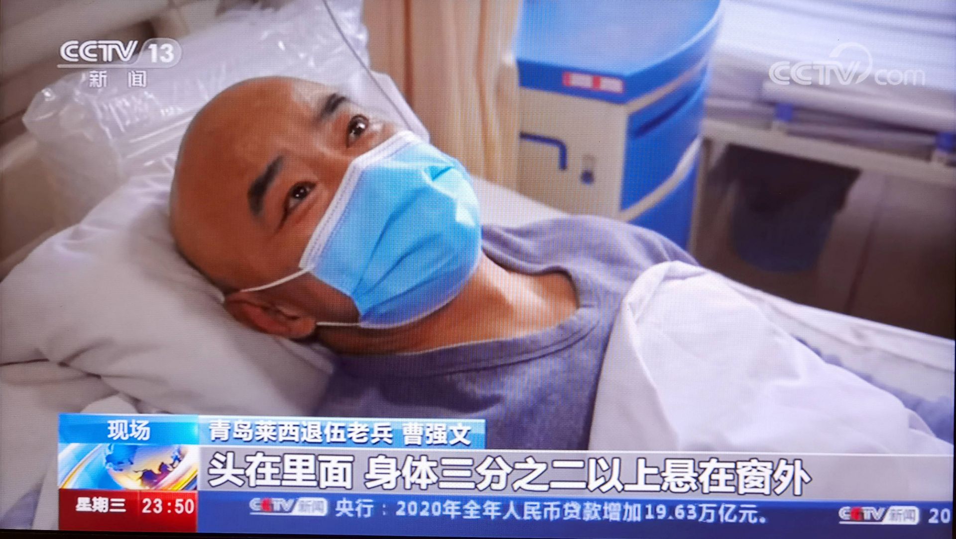 “山东青岛莱西市的一名退役老兵在防疫执勤的时候,发现了一个三岁幼童挂在三楼的防盗窗,在危急之下,他徒手爬楼救人,结果不慎跌落,导致了自己的脚跟骨粉碎性骨折,而路人见状也是纷纷施以援手,最终在大家的共同努力下救下了孩子……”1月13日晚上,CCTV-13新闻频道的新闻资讯栏目《24小时》用了2分24秒的时间,讲述了1月11日发生在莱西市御苑枫景小区的这个暖心故事,为曹强文等人的行为点赞。当晚,CCTV-7国防军事频道,也在《军事报道》栏目中,用1分17秒的时间讲述了曹强文救人受伤的英勇事迹。