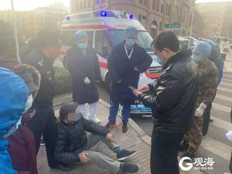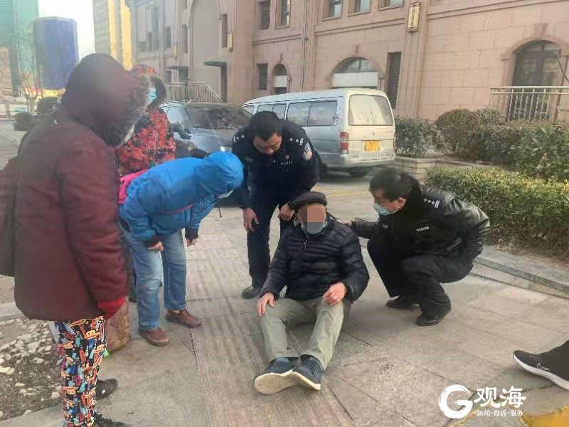 青岛日报社/观海新闻1月19日讯 1月16日正值青岛降温天气,当日15时30分左右,青岛街头出现这样一幕:一老人倒在费县路与朝城路路口,额头、脸部有明显受伤……两名民警迅速上前扶起老人,并拨打了120急救电话。