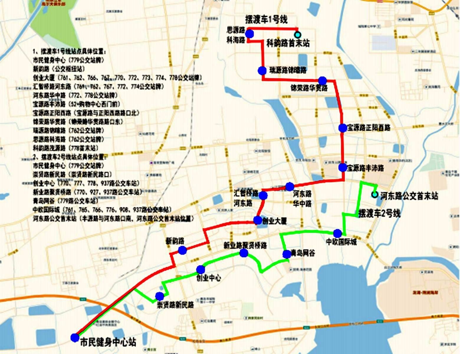 本着“大站快车、便捷、高效”原则,青岛高新区相关部门多次实地勘测线路,力求最大程度满足乘客出行需求,增设了摆渡线路一号线的“汇智桥路河东路(行政审批大厅)”站。