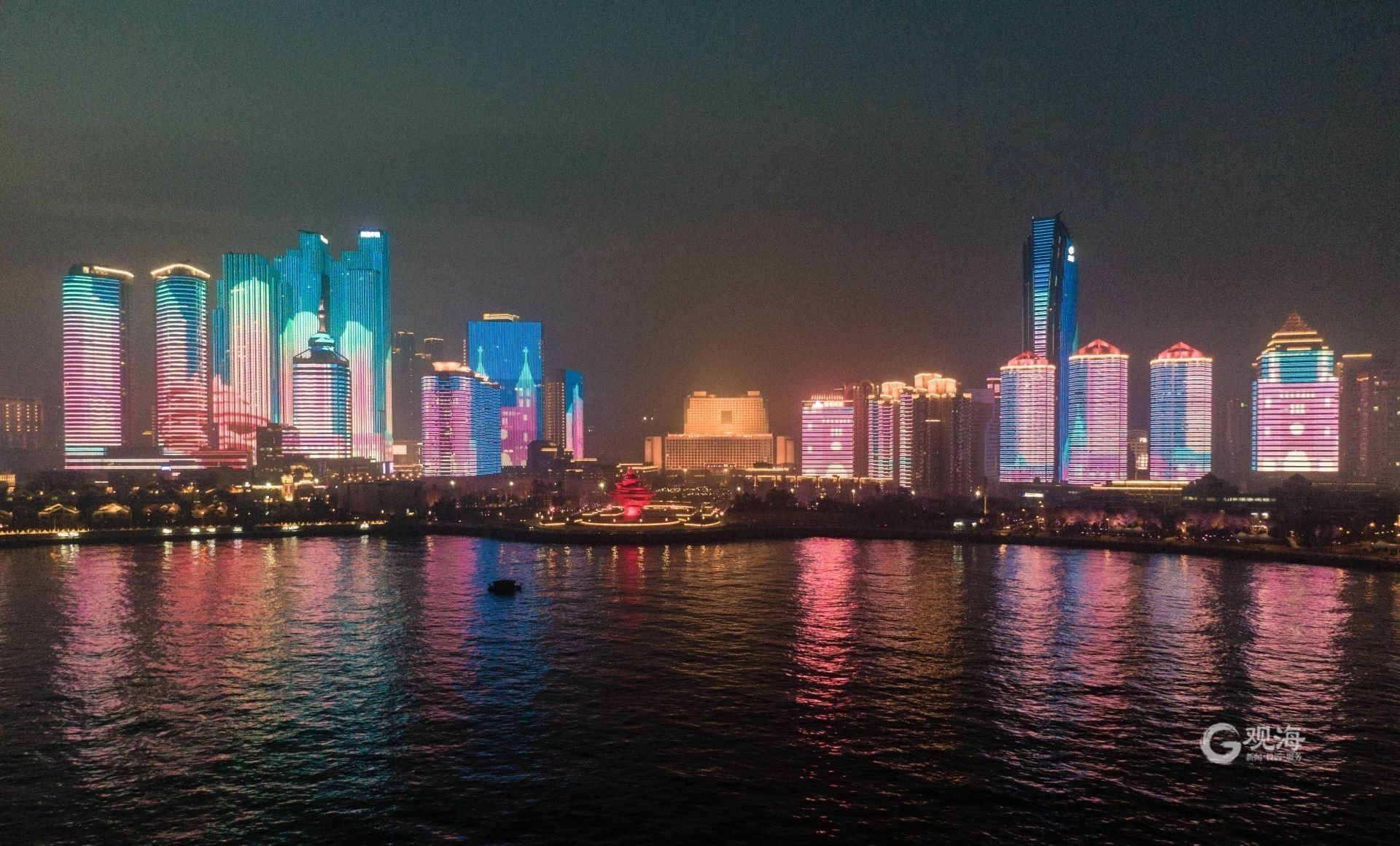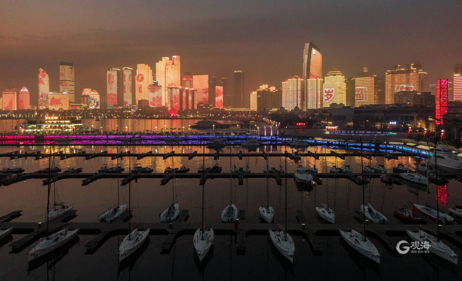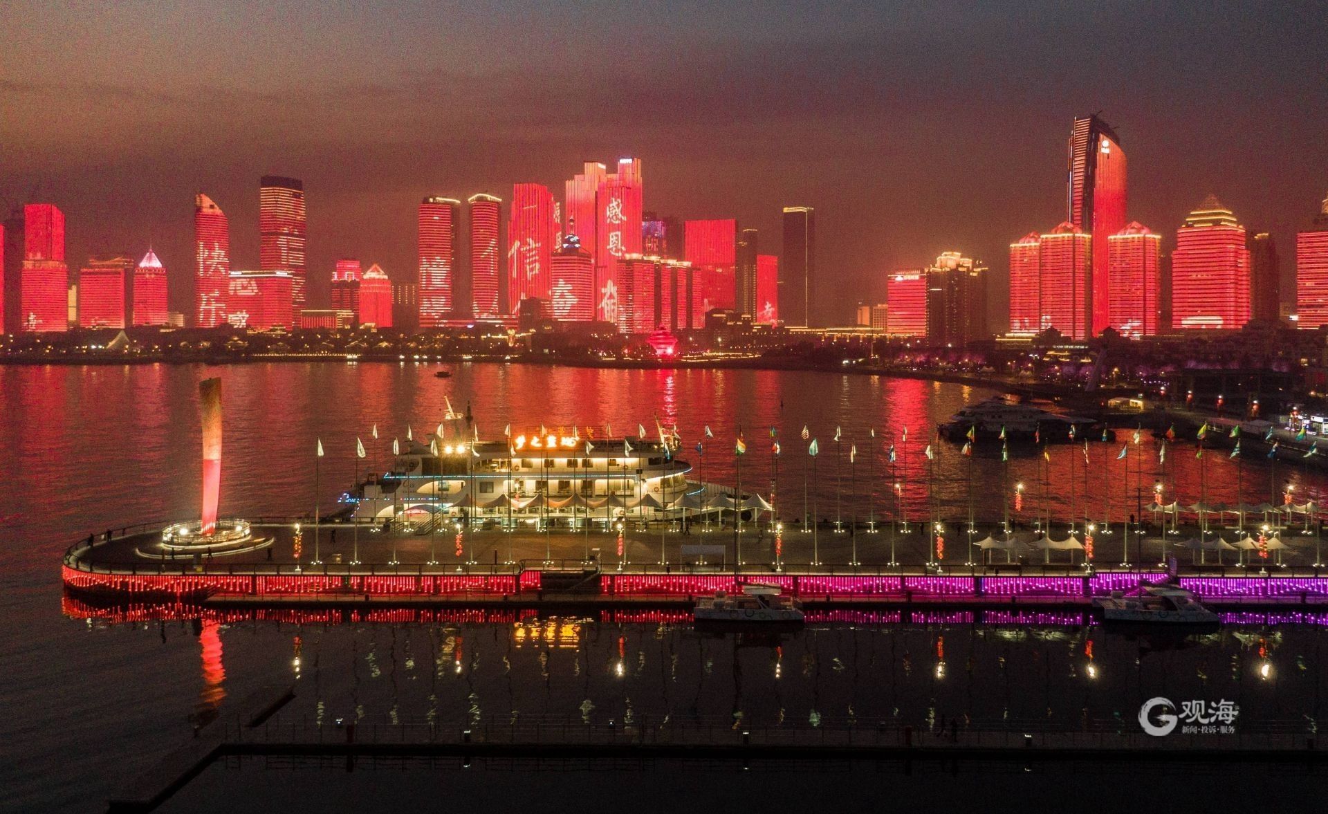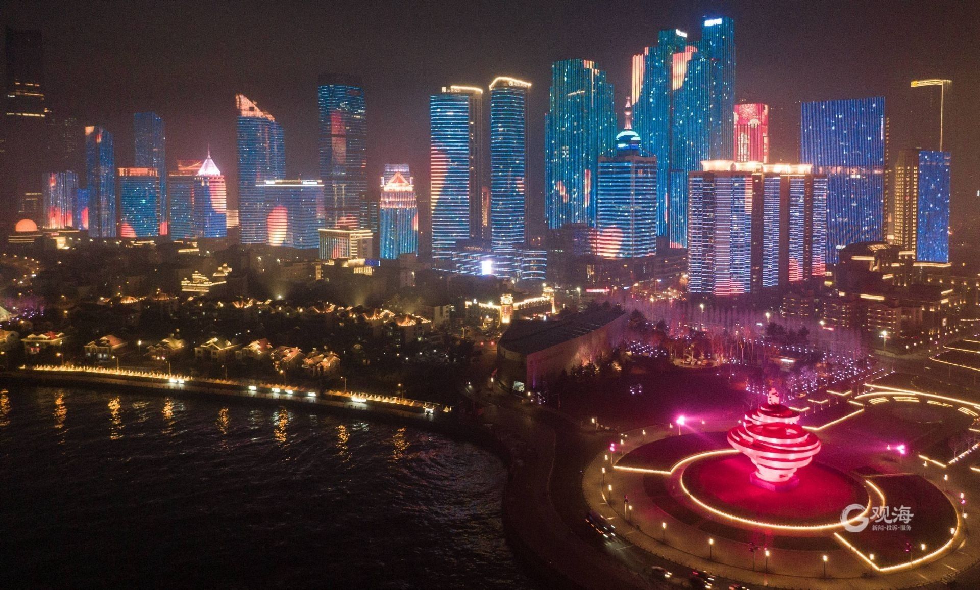 灯光秀为除夕添彩。青岛日报/观海新闻记者 刘栋 摄