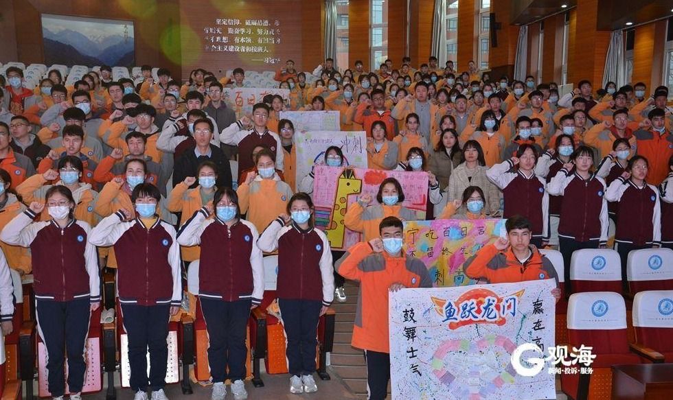 开学第一天,高考倒计时98天,青岛六十八中举行冲刺高考誓师大会,振奋精神、鼓舞士气。记者 赵黎 摄