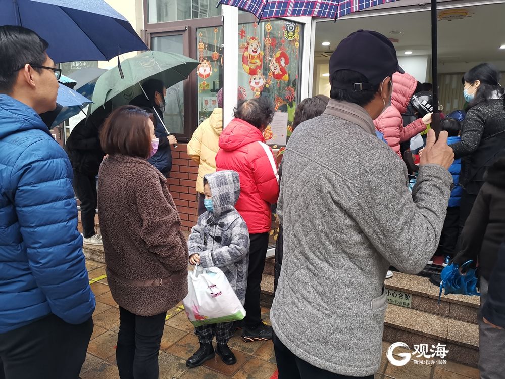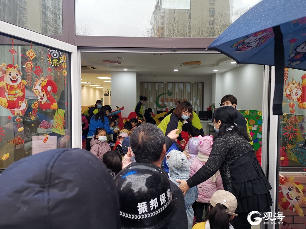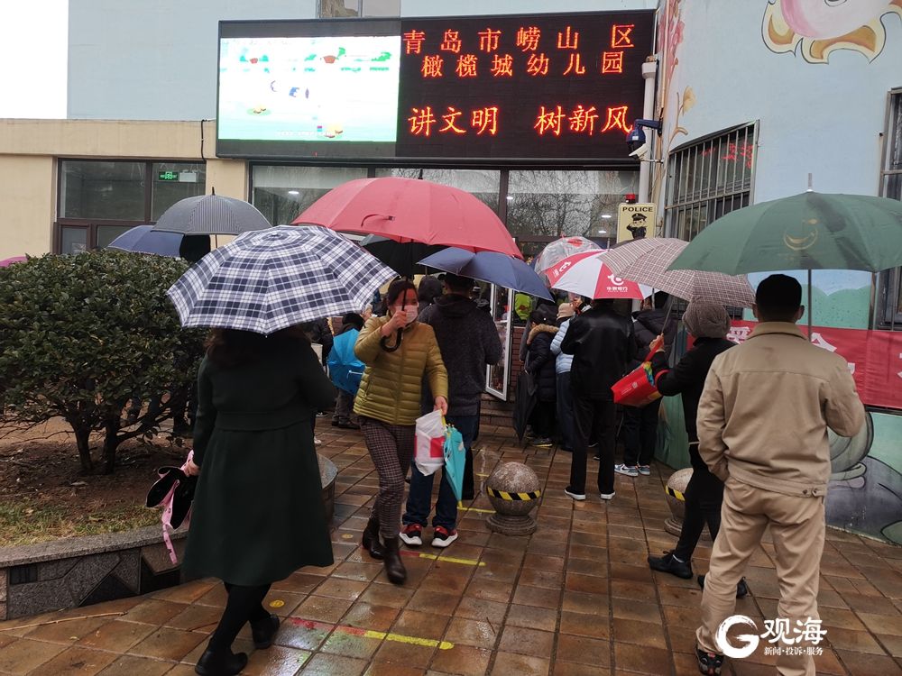 青岛市崂山区一家幼儿园的门口,挤满了前来送孩子的家长。
