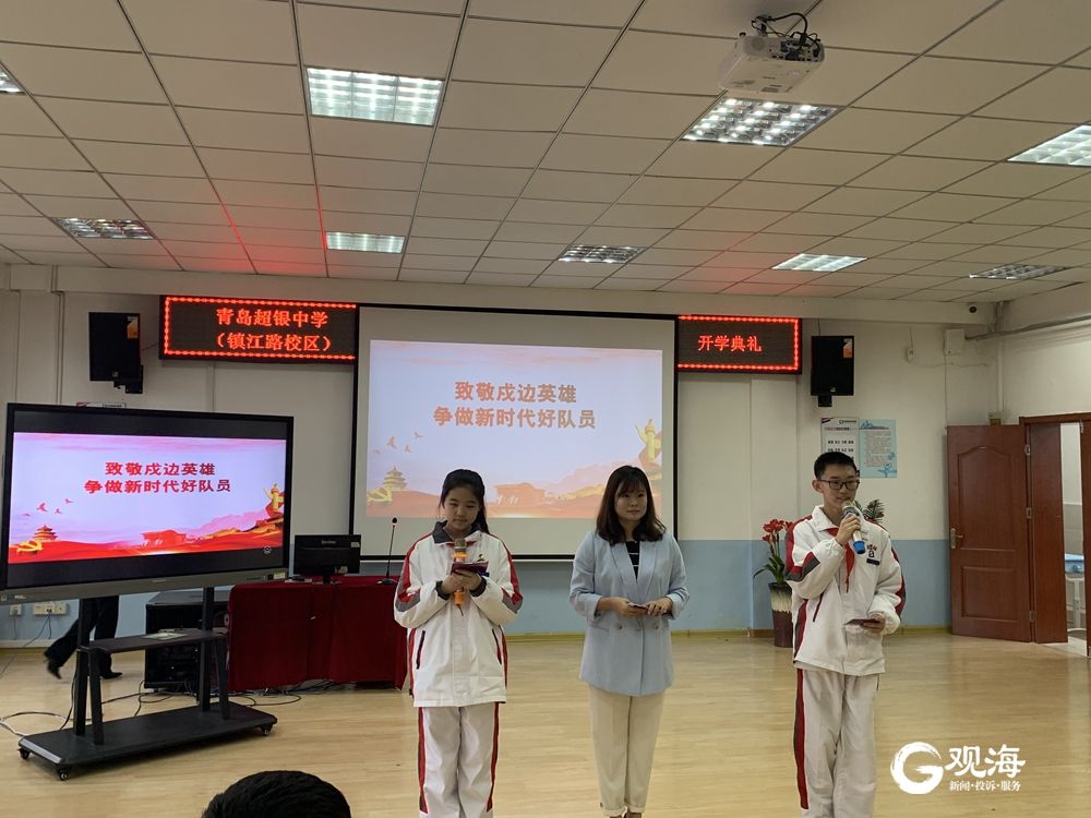 超银中学(镇江路校区)开学典礼,向戍边卫国英雄致敬。记者 赵黎 摄