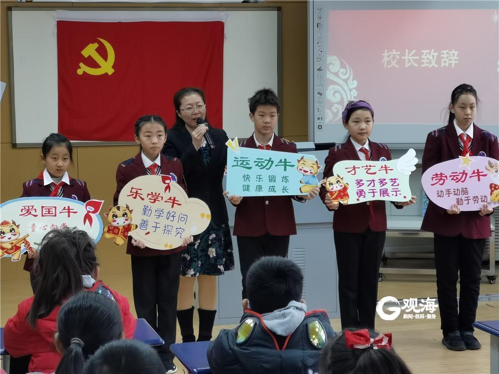 青岛六十八中的学生正式开启元气满满、牛气十足的春季新学期。记者 王世锋 摄
