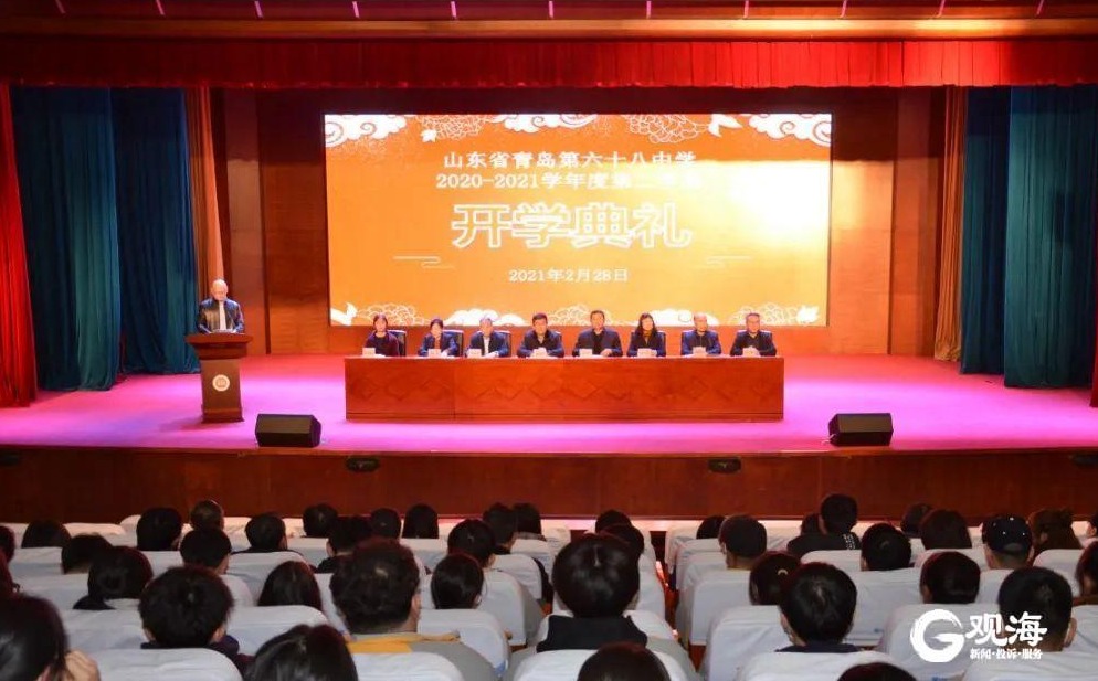 2月28日下午,青岛六十八中也在学校礼堂举行了新学期开学典礼。记者 王世锋 摄