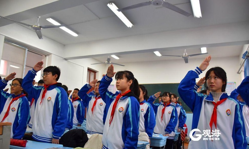 3月1日早上,青岛六十三中师生共同开启了新学期生活。记者 王世锋 摄