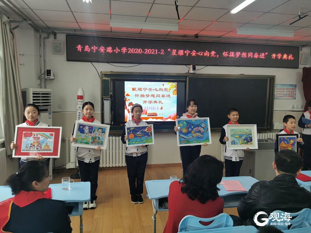 青岛莱芜一路小学采用了线上直播的方式邀请家长“云探校”,一同参与新学期开学典礼。记者 王世锋 摄