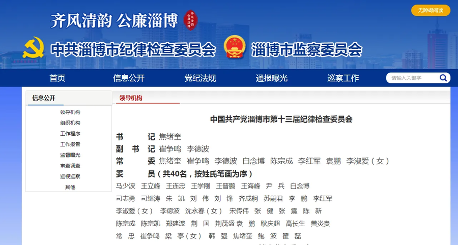 据淄博市纪委监委网站“领导机构”信息显示,焦绪奎已任淄博市纪委书记。