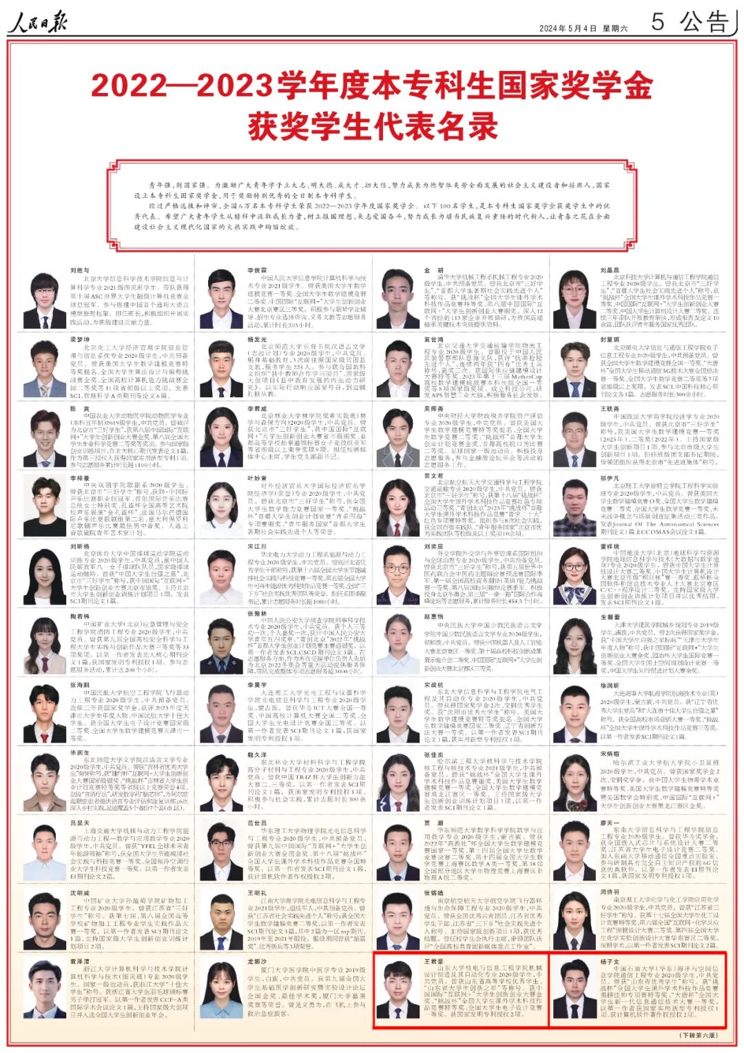 经过严格选拔和评审,全国4.5万名研究生、6万名本专科学生、约2万名中职学生荣获2022—2023学年度国家奖学金。山东省共计14名学子入选代表名录,他们是:
