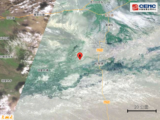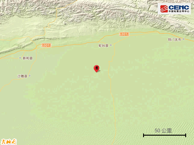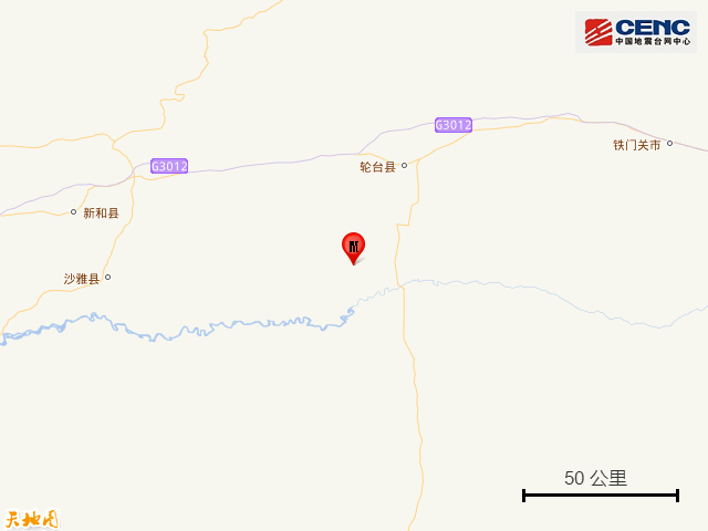 周边县城:震中距轮台县59公里、距库车市97公里、距沙雅县102公里、距新和县119公里、距库尔勒市188公里,距铁门关市154公里,距乌鲁木齐市409公里。