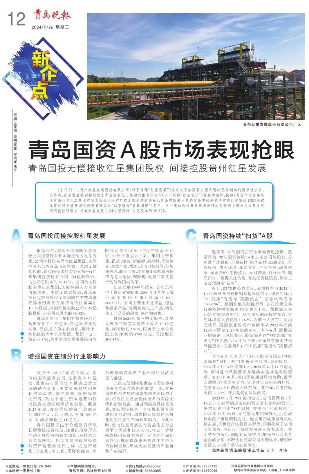 青岛国投间接控股红星发展