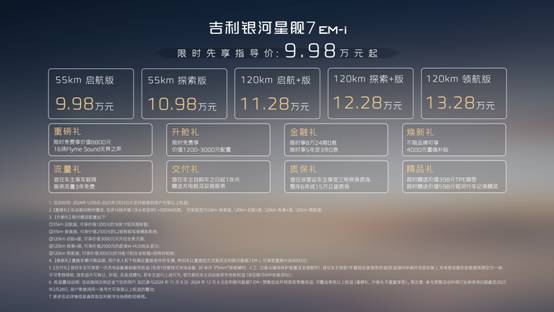 吉利银河“款款皆爆款”——源于领先的产品力,更源于对“造每个人的智能精品车”的核心理念的坚守,为国民造智能精品车不动摇。吉利近10年累计研发投入超过2000亿,随着智能吉利2025战略在“智能架构、三电技术,到自研芯片、操作系统、卫星互联”等领先技术不断落地,为打造高价值的新能源汽车提供了强大的技术保障。吉利银河星舰7EM-i首搭包括全球新一代雷神EM-i超级电混在内的诸多黑科技,填补在A级插混市场缺少精品车的空缺,为吉利银河家族注入“启航”新活力。